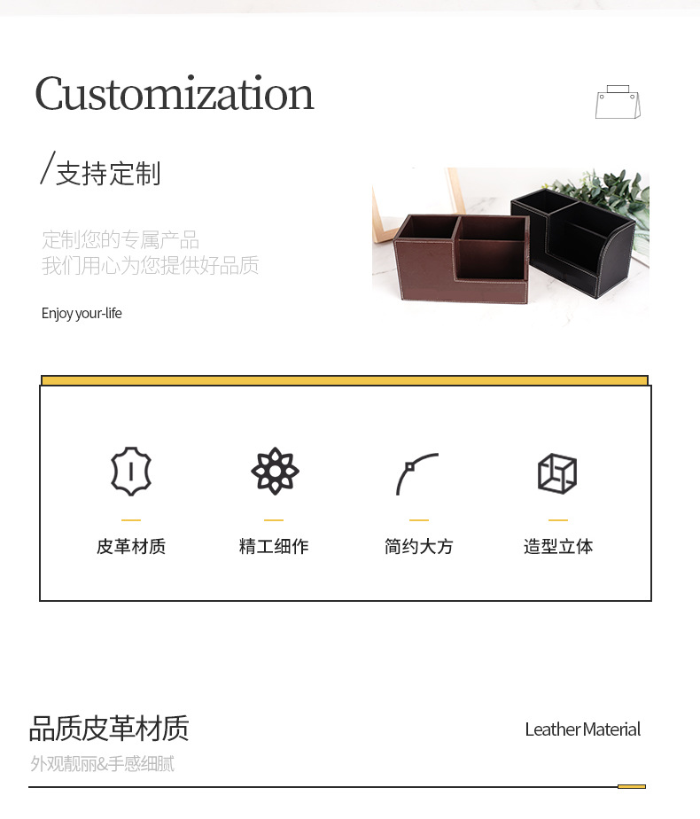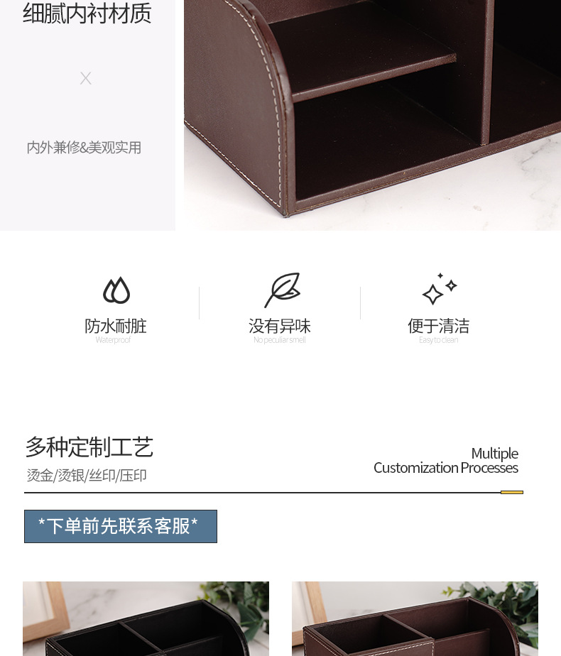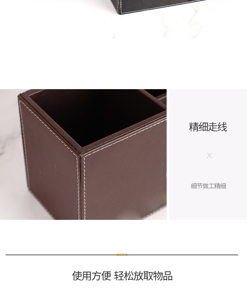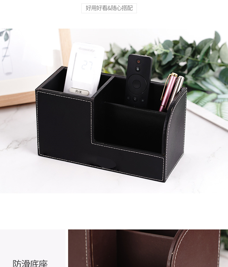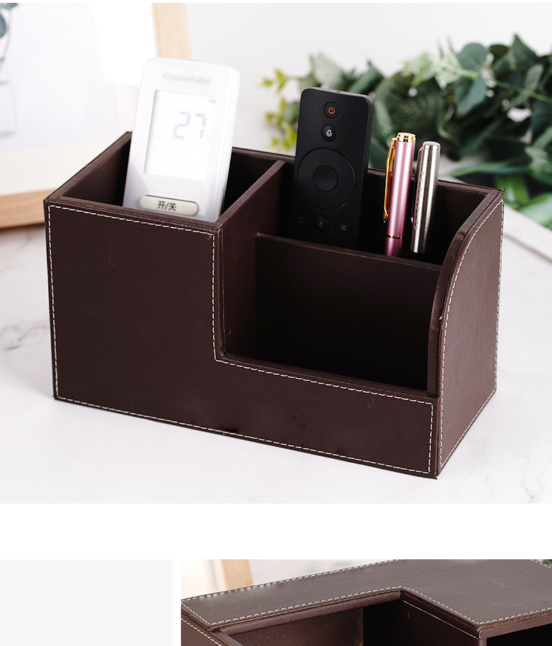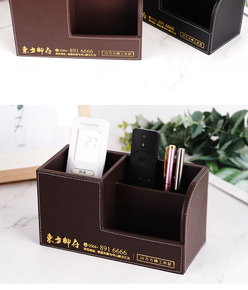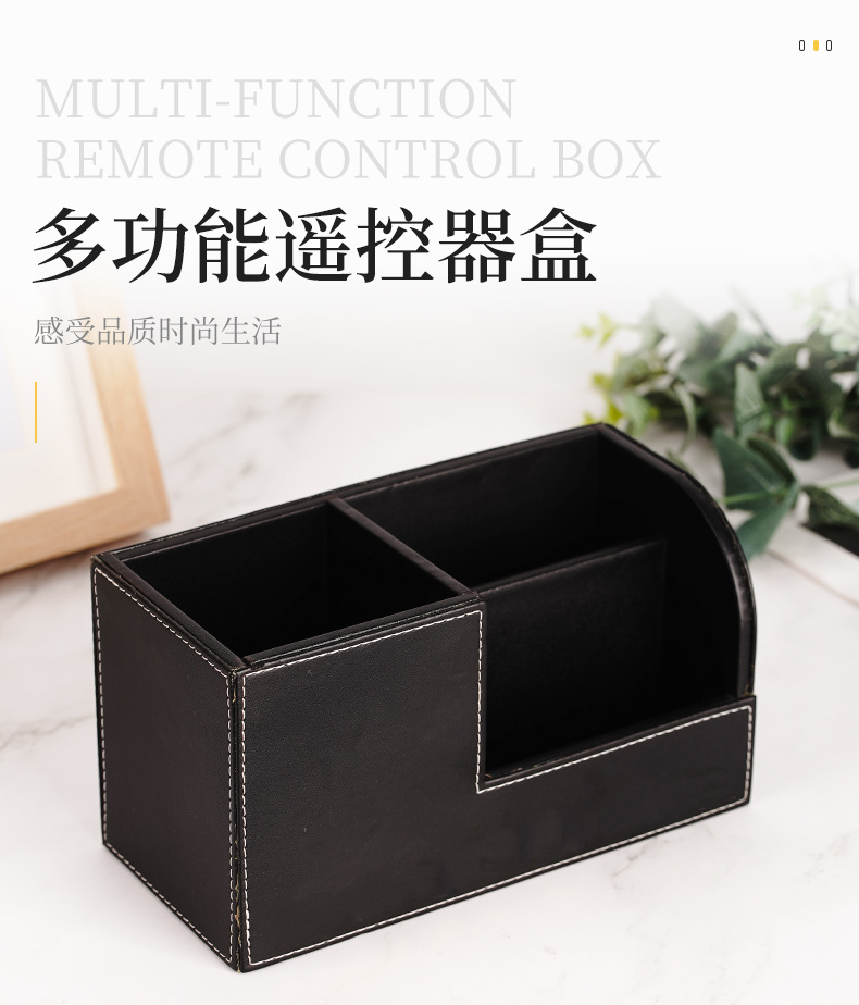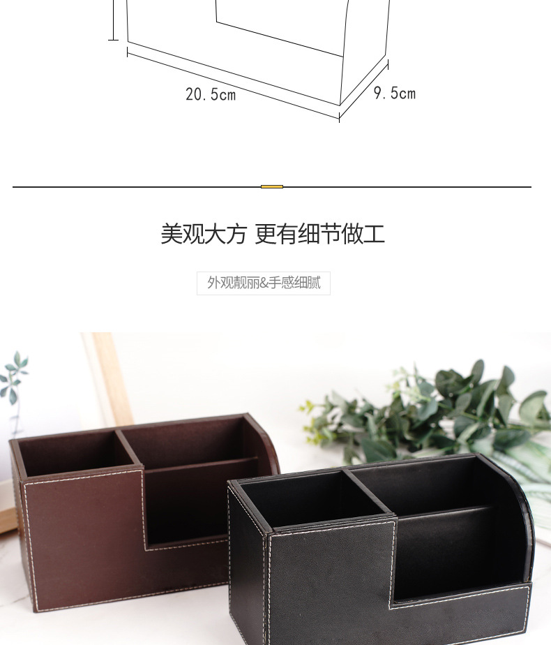批发多功能桌面摆件遥控器收纳盒PU皮革创意笔筒办公文具